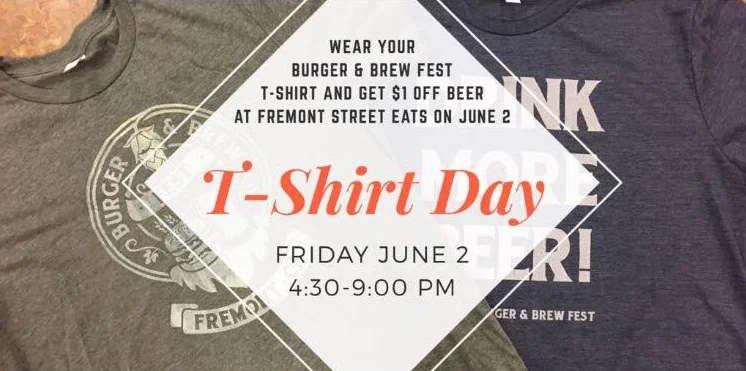 Did you attend the Burger and Brew Fest? Did you buy a live screened T-Shirt? Well then wear your Burger & Brew Fest logo T-shirt or Burger & Brew Fest "Drink More Beer" T-shirt to Fremont Street Eats this Friday to get a dollar off beer all night (shirt wearer only).